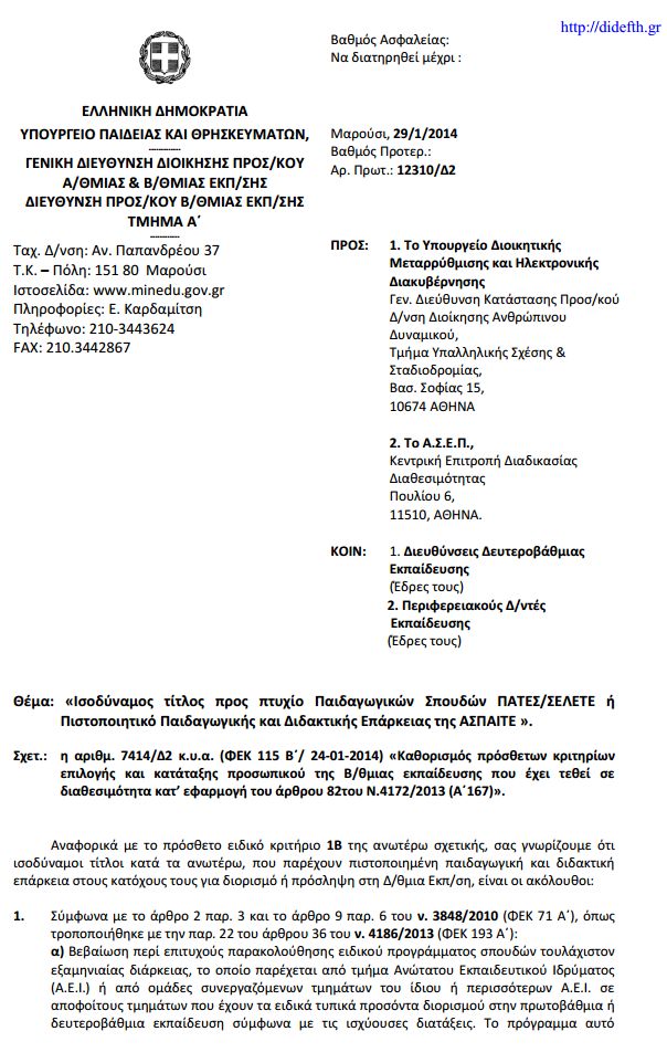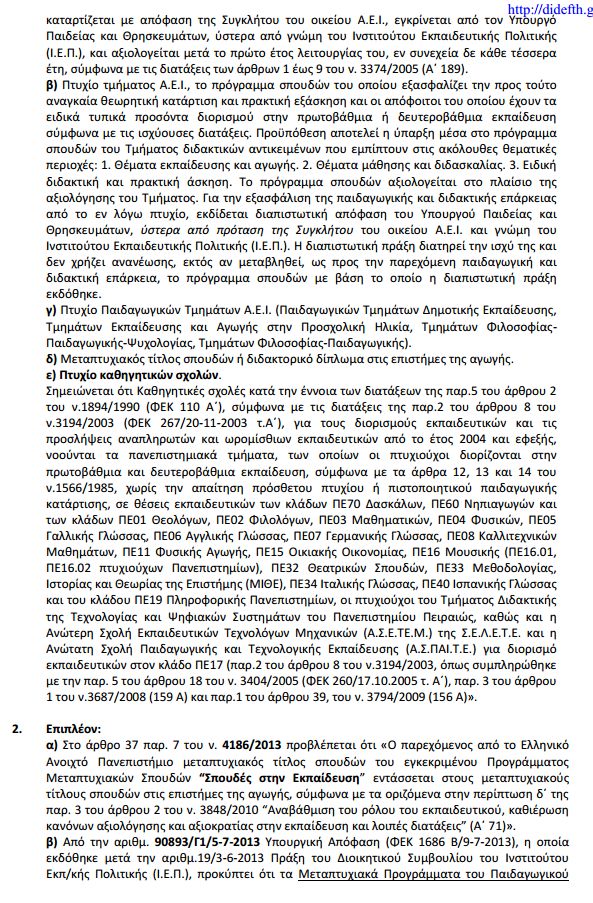 Δείτε ποιοι είναι οι ισοδύναμοι τίτλοι που παρέχουν πιστοποιημένη διδακτική και παιδαγωγική επάρκεια στους κατόχους τους για διορισμό ή πρόσληψη στη Δ/μια Εκπ/ση.